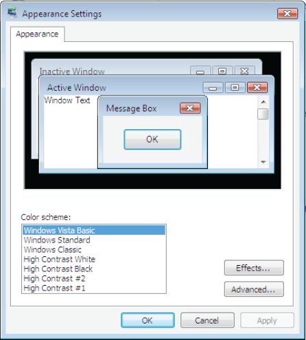 - In the Appearance Settings dialog box, click Windows Vista
